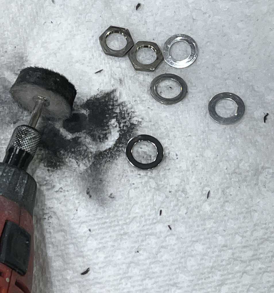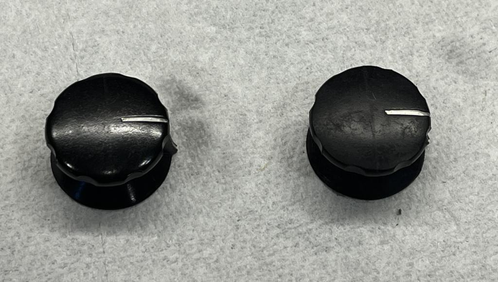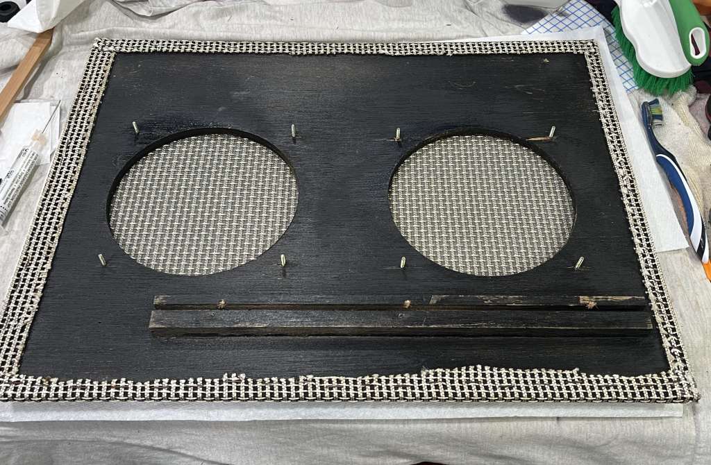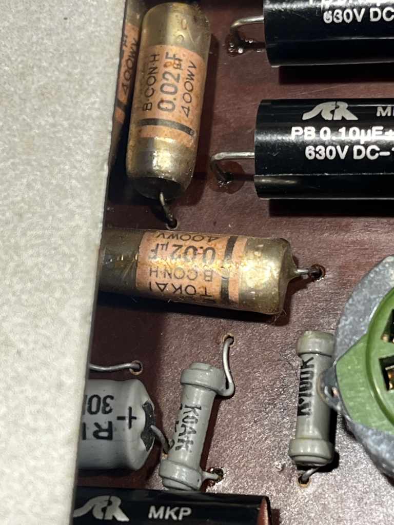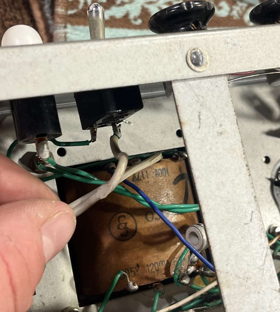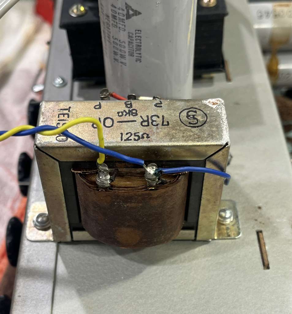 Original pre-amp tubesOriginal 6BQ5 output tubesOriginal 50uf x 2 filter capInstalling new polypropylene capacitorsCreating a 3uf capacitor3uf /350v capacitor replacementLots of Acetone and cotton swabs to clean the old flux off the back of the boards.New 50×2 capacitorUltrasonic cleaning the knobs, jack nuts and washersPolishing up the nuts and washersPolishing the knobsDelaminating plywoodDelaminating plywoodUsing a syringe with wood glueLots o’ clamps and glueMore glueing down tolexBlack tinted shellac to refresh the interiorTrying to lessen the stains in the grill clothSpeakers look great!Reverb tank looks in ok shapeAging a replacement handleDying the white handle threadsTwo new handles, one relicedSanding off the corrosion and topcoat paintEmblem ready for clear Lacquer