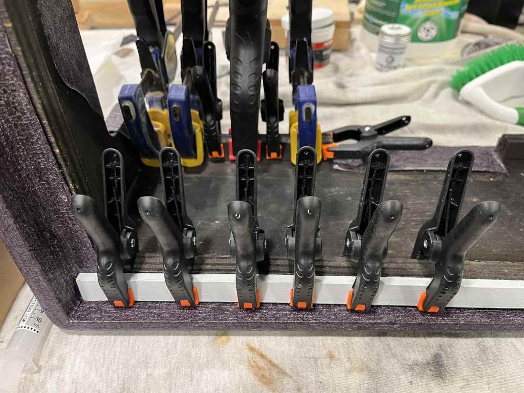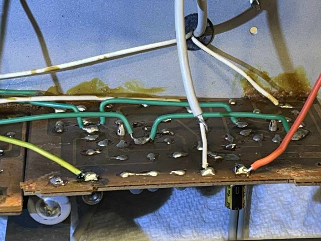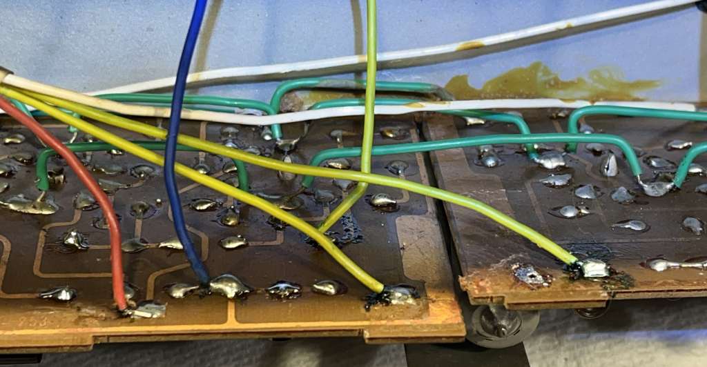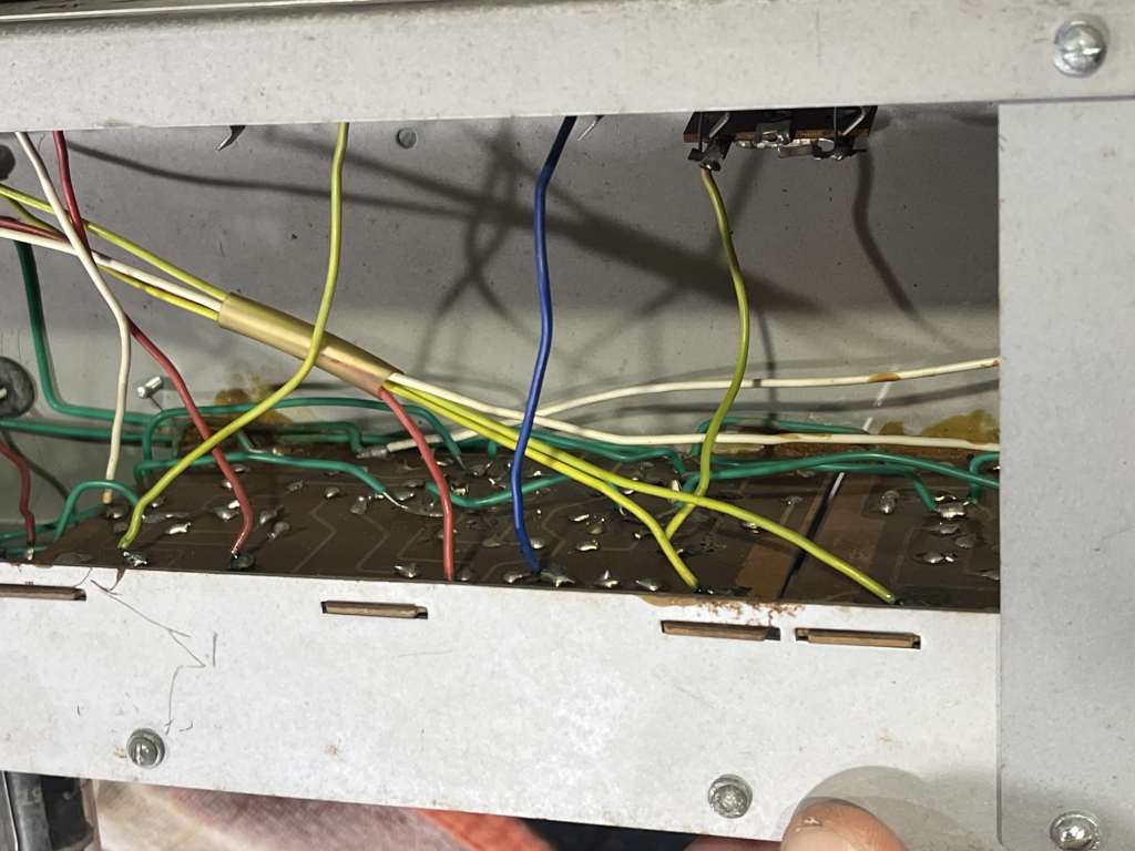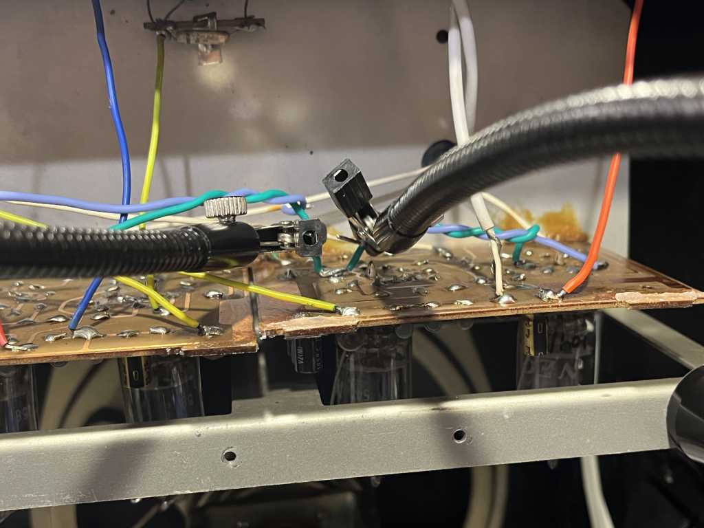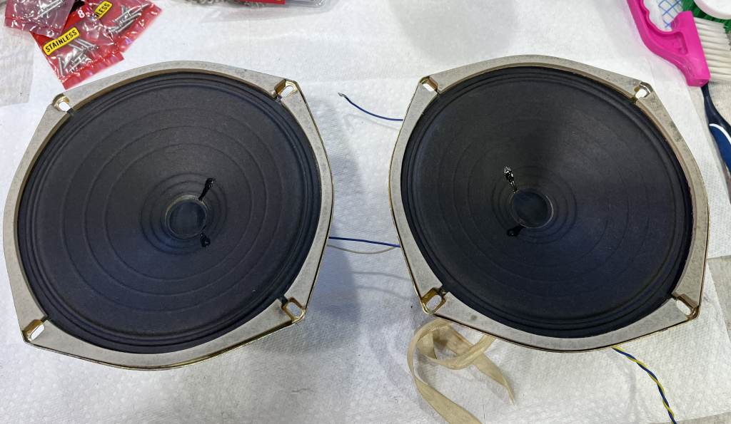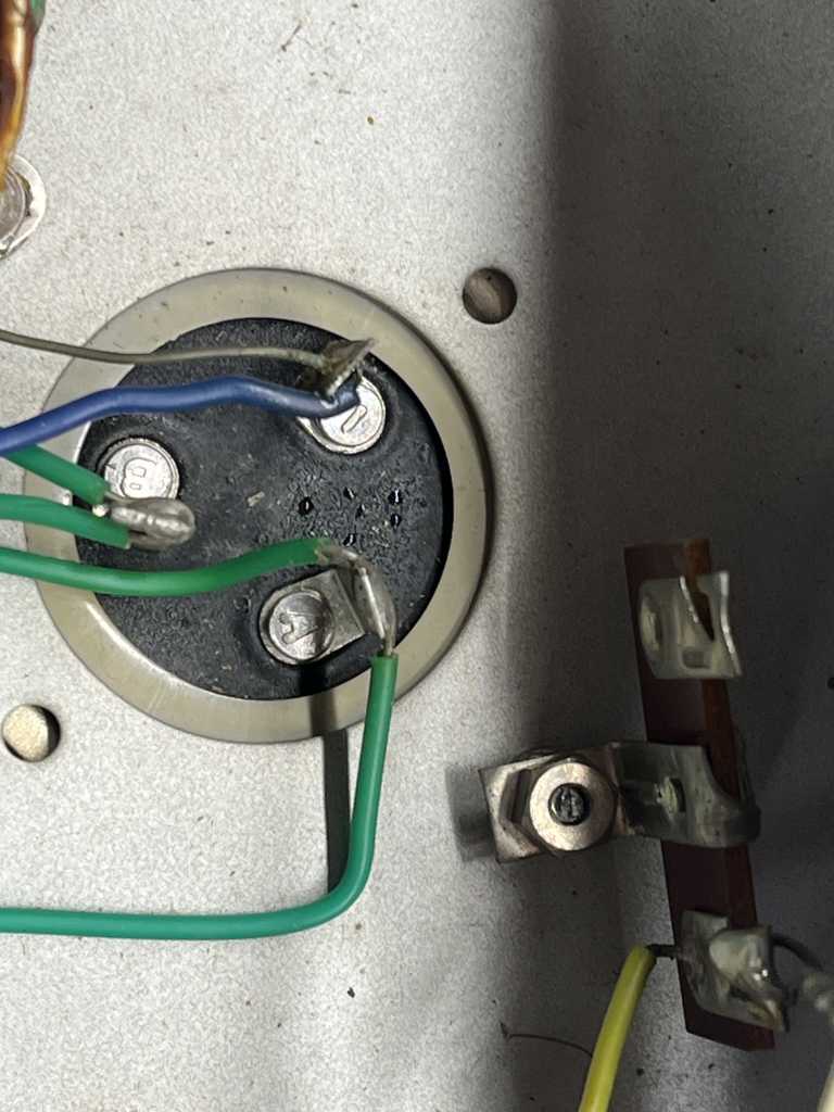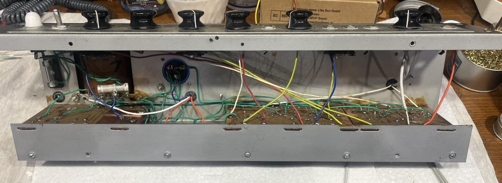 Original pre-amp tubesOriginal 6BQ5 output tubesOriginal 50uf x 2 filter capInstalling new polypropylene capacitorsCreating a 3uf capacitor3uf /350v capacitor replacementLots of Acetone and cotton swabs to clean the old flux off the back of the boards.New 50×2 capacitorUltrasonic cleaning the knobs, jack nuts and washersPolishing up the nuts and washersPolishing the knobsDelaminating plywoodDelaminating plywoodUsing a syringe with wood glueLots o’ clamps and glueMore glueing down tolexBlack tinted shellac to refresh the interiorTrying to lessen the stains in the grill clothSpeakers look great!Reverb tank looks in ok shapeAging a replacement handleDying the white handle threadsTwo new handles, one relicedSanding off the corrosion and topcoat paintEmblem ready for clear Lacquer