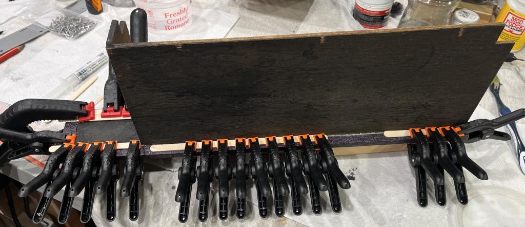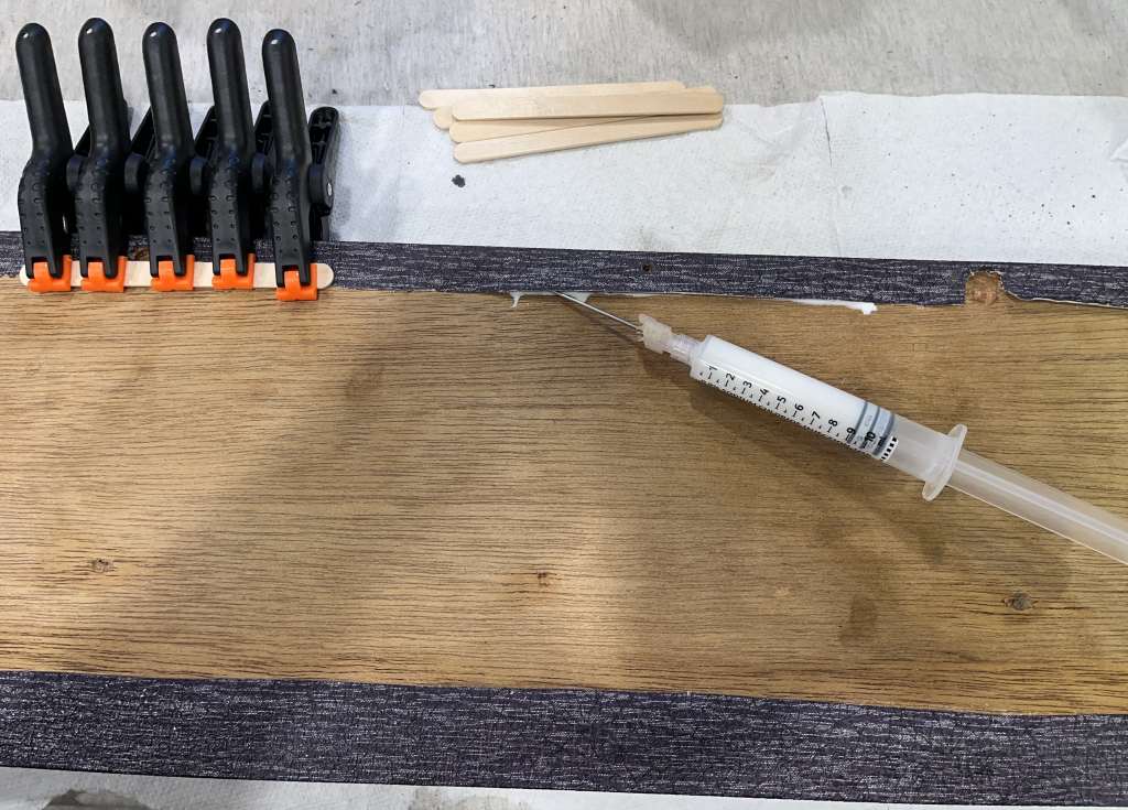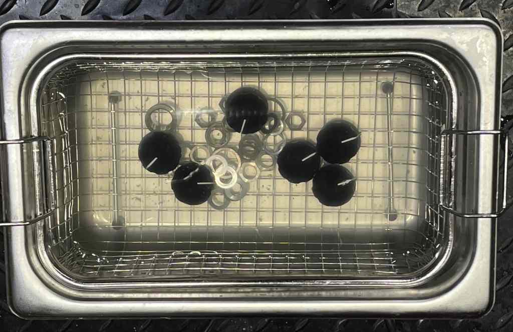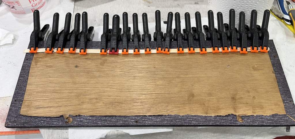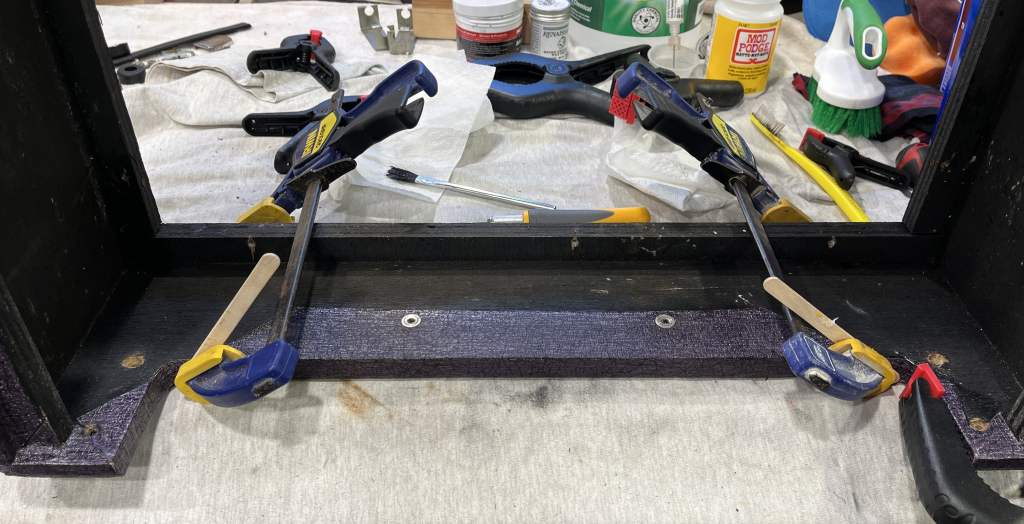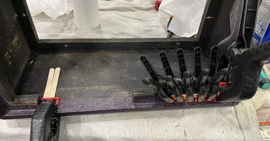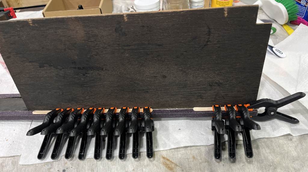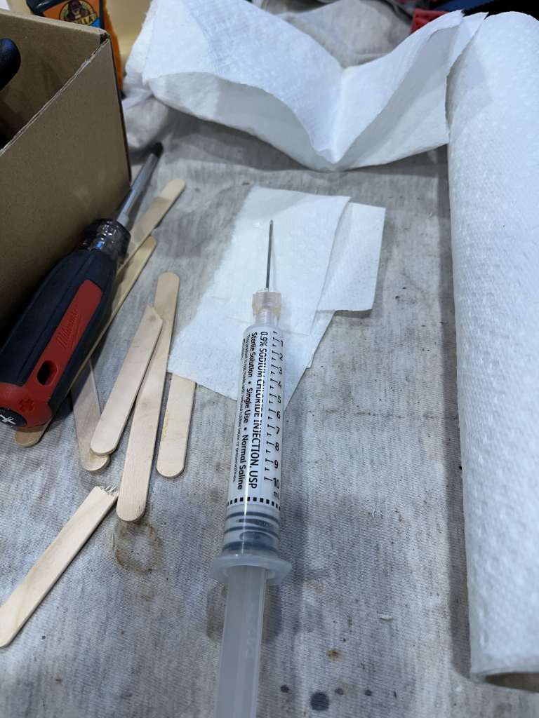 Original pre-amp tubesOriginal 6BQ5 output tubesOriginal 50uf x 2 filter capInstalling new polypropylene capacitorsCreating a 3uf capacitor3uf /350v capacitor replacementLots of Acetone and cotton swabs to clean the old flux off the back of the boards.New 50×2 capacitorUltrasonic cleaning the knobs, jack nuts and washersPolishing up the nuts and washersPolishing the knobsDelaminating plywoodDelaminating plywoodUsing a syringe with wood glueLots o’ clamps and glueMore glueing down tolexBlack tinted shellac to refresh the interiorTrying to lessen the stains in the grill clothSpeakers look great!Reverb tank looks in ok shapeAging a replacement handleDying the white handle threadsTwo new handles, one relicedSanding off the corrosion and topcoat paintEmblem ready for clear Lacquer