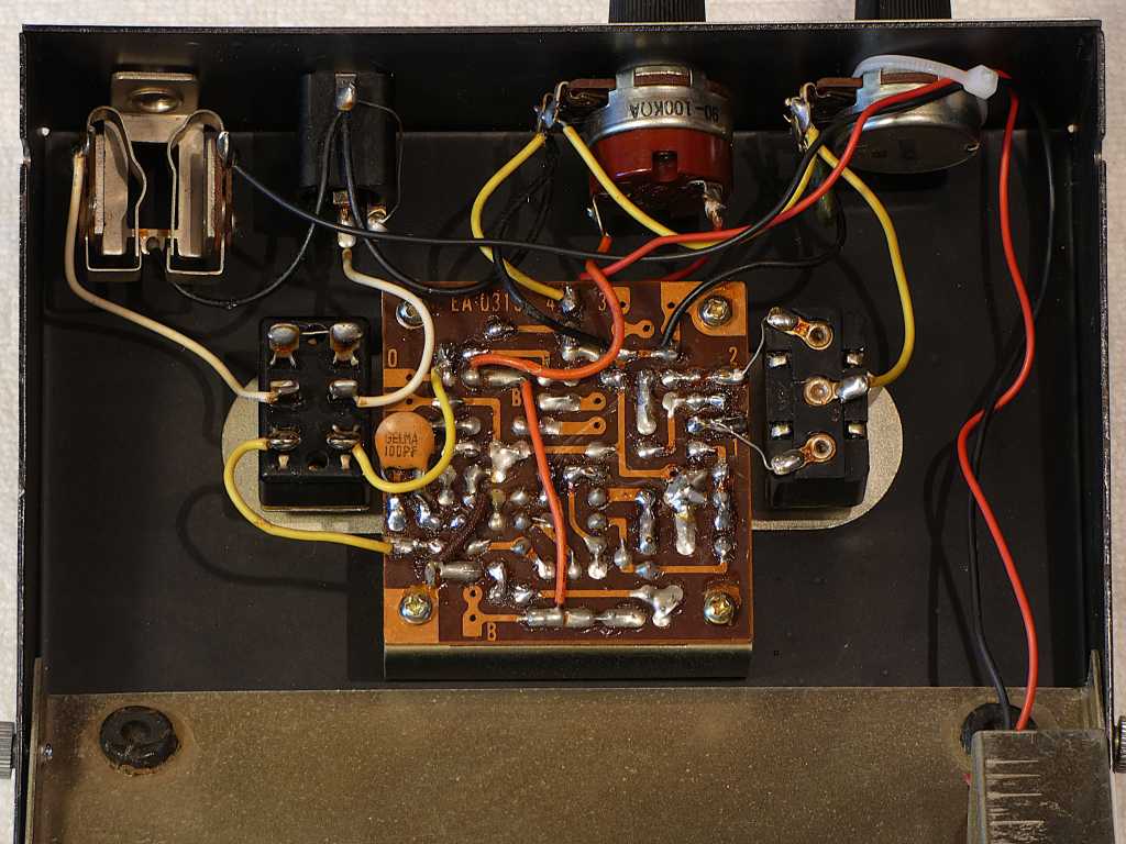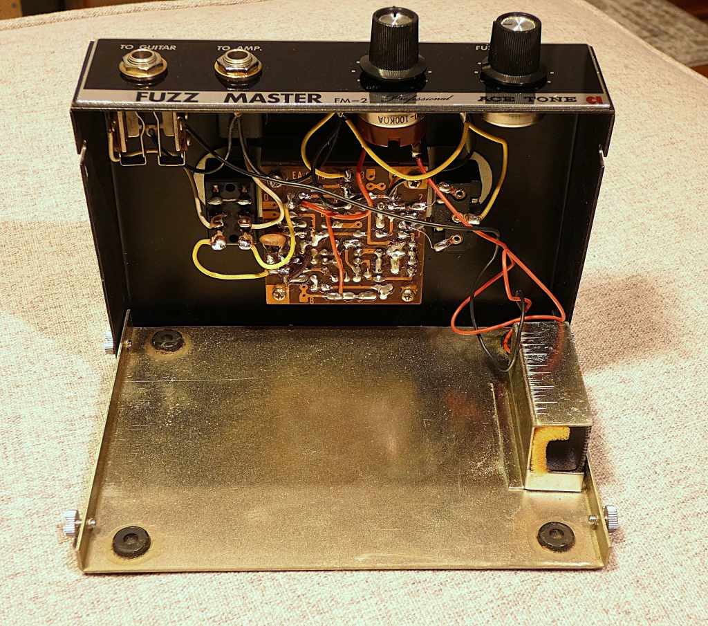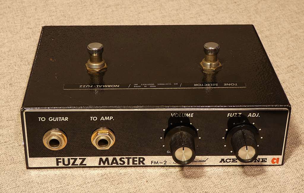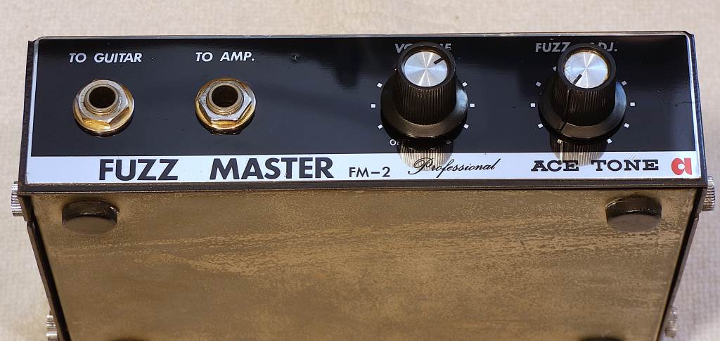 Here is another great vintage Ace Tone pedal. Using the codes on the potentiometers to date it, this pedal was built no earlier than Sept of 1970. The Ace Tone Fuzz Master FM-2 pedal. Only produced from 1969-1971 and is a slightly modified Univox Superfuzz clone. It has been thoroughly cleaned, and I polished up the faceplate and the aluminum on the knobs. The potentiometers and jacks were sprayed with De-Oxit. The jacks were brushed carefully to make sure no cutting in and out of the guitar signal.