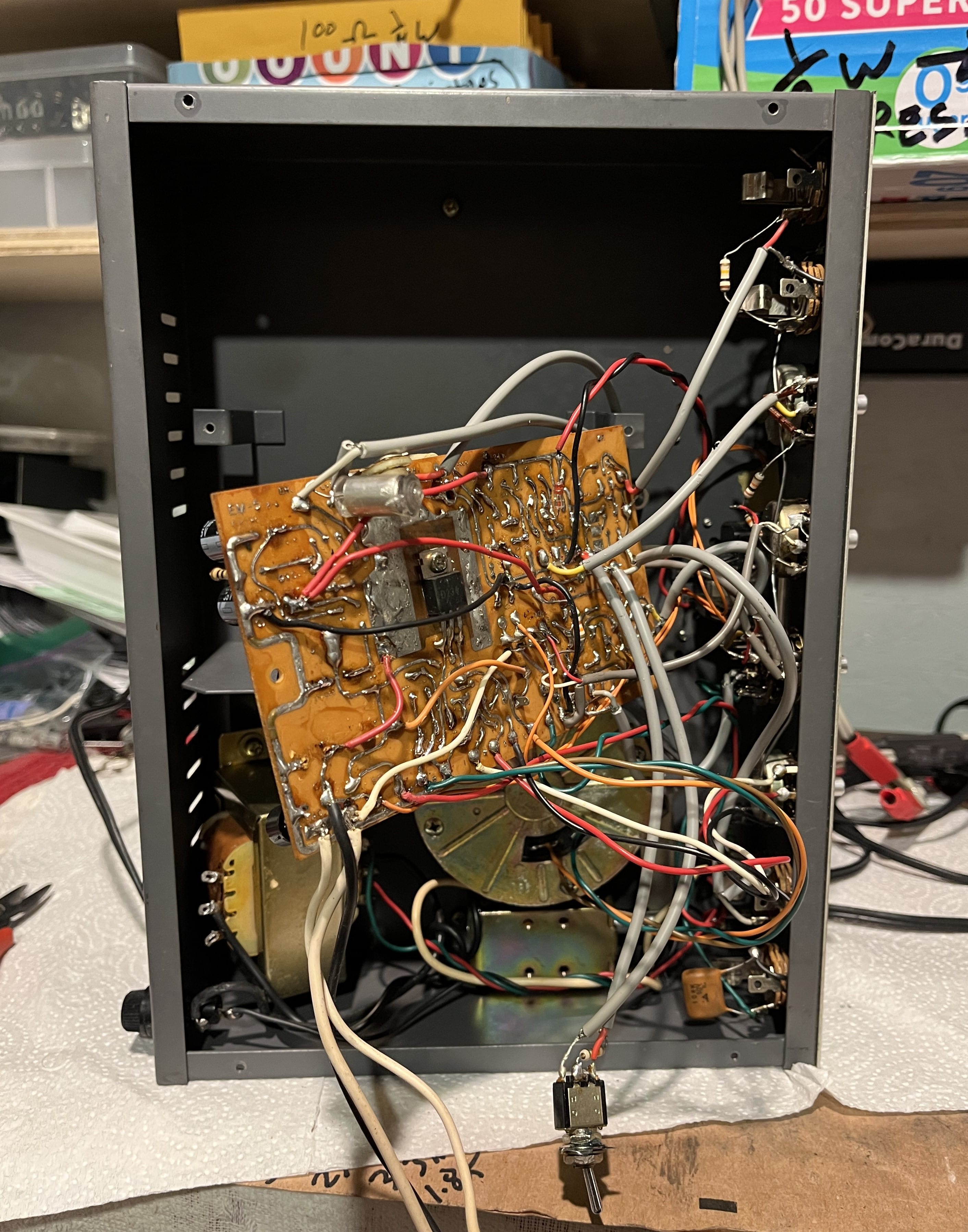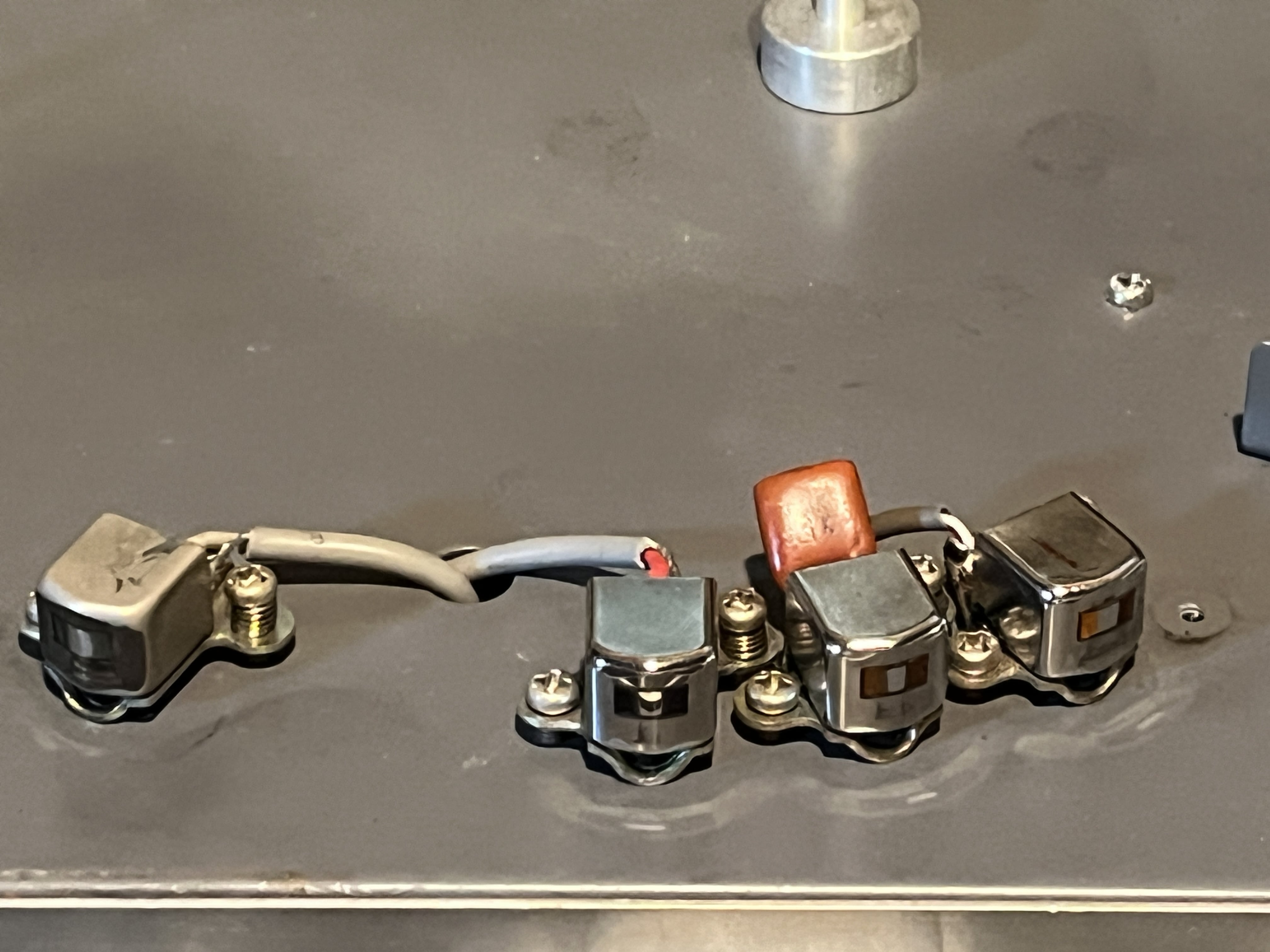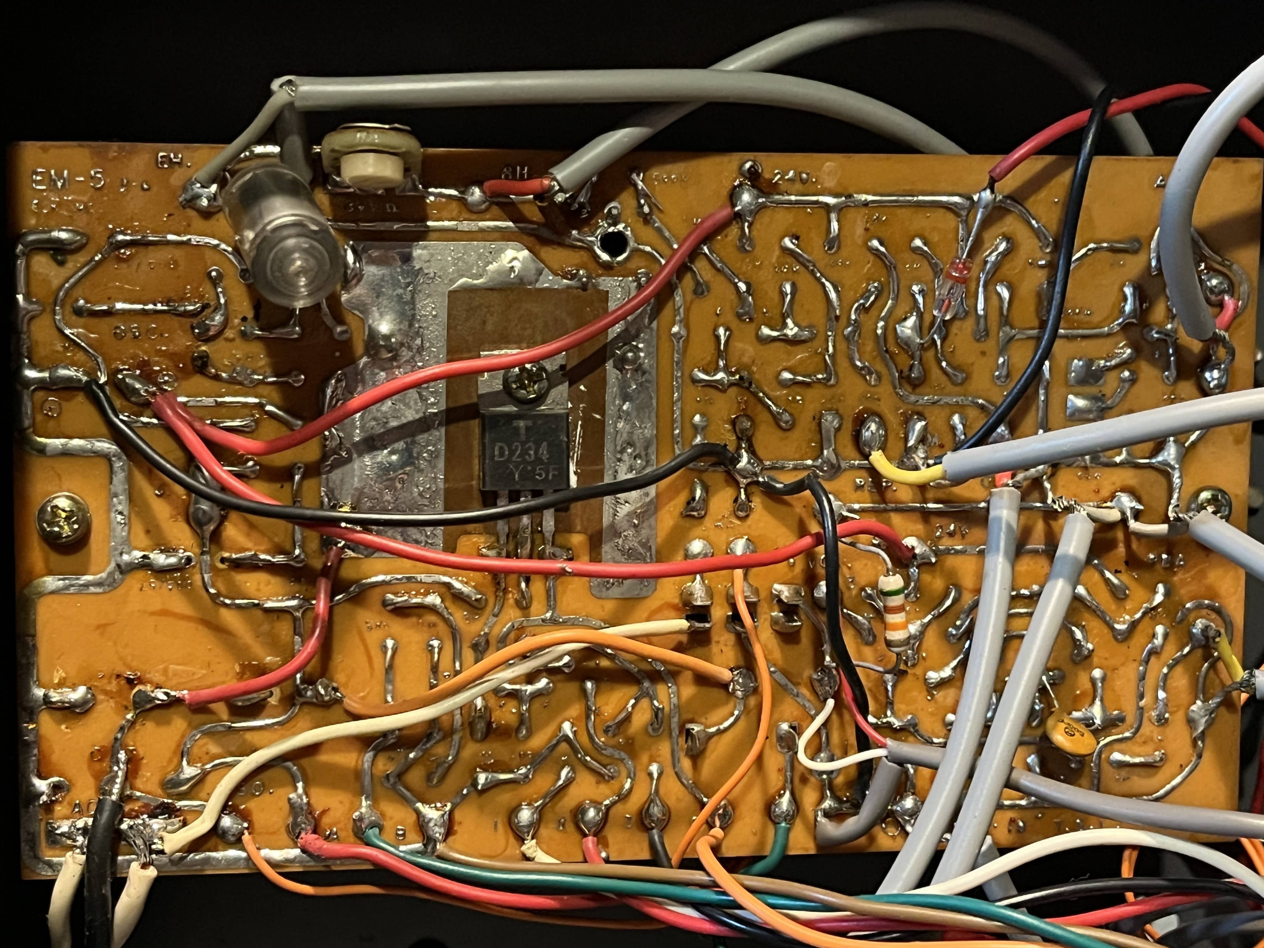 Complete in it’s original case.Heads need to be cleaned, lots of residue on themIt’s in great shape, just a few scratches.What it looks like as opened for the first time in probably 49 years.Looks like the same capstan motor in an Ace Tone EC-10.Time to dig in and replace old parts!Combination of Sankyo and Matsushita (Panasonic) caps.All the capacitors are now replaced and upgraded to film caps in a few spots.Polishing the aluminum knobs with a drill.Rubber renue on the pinch roller to clean and condition it.