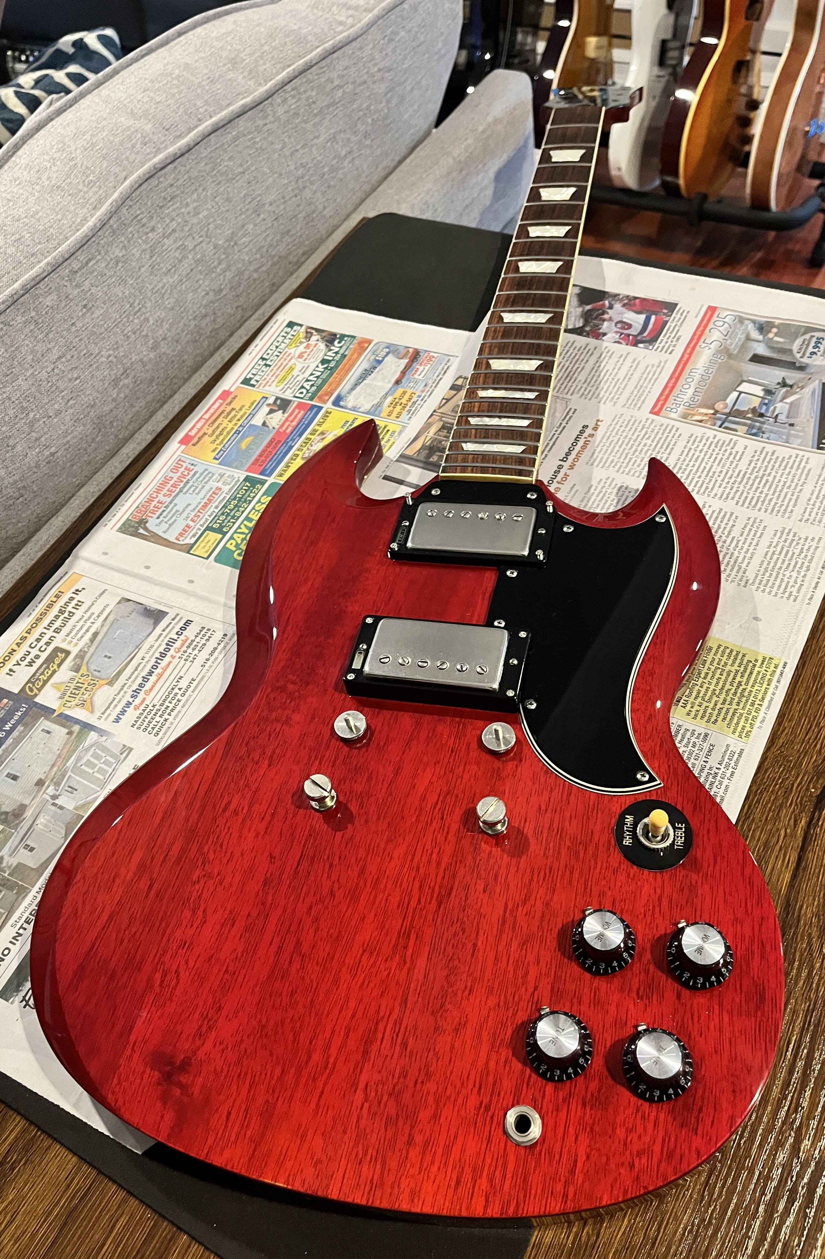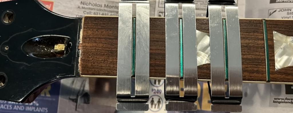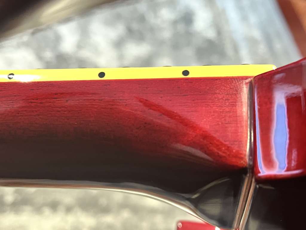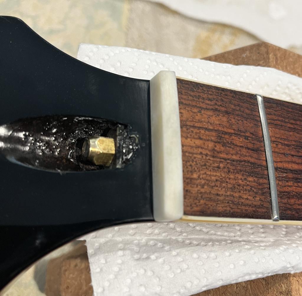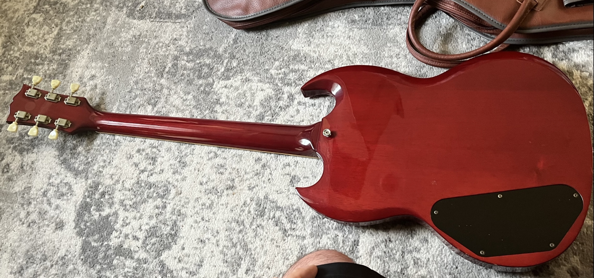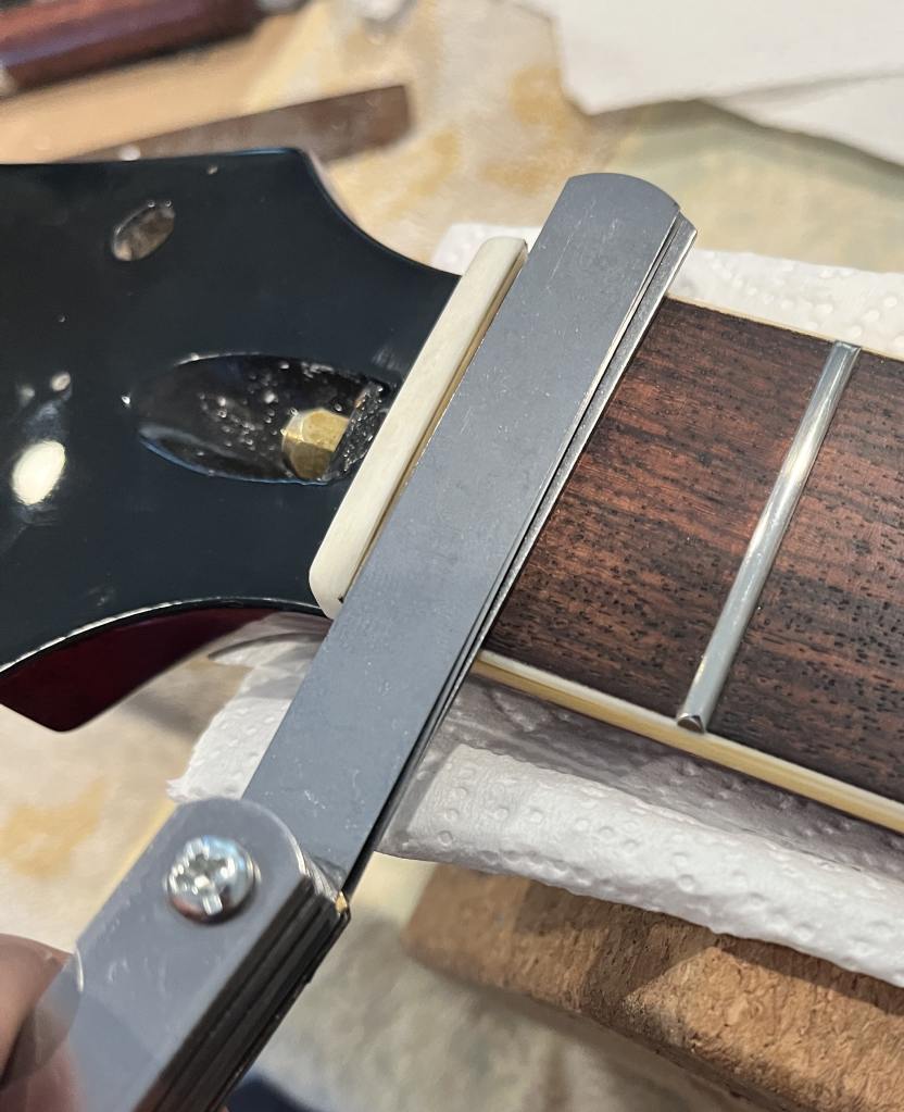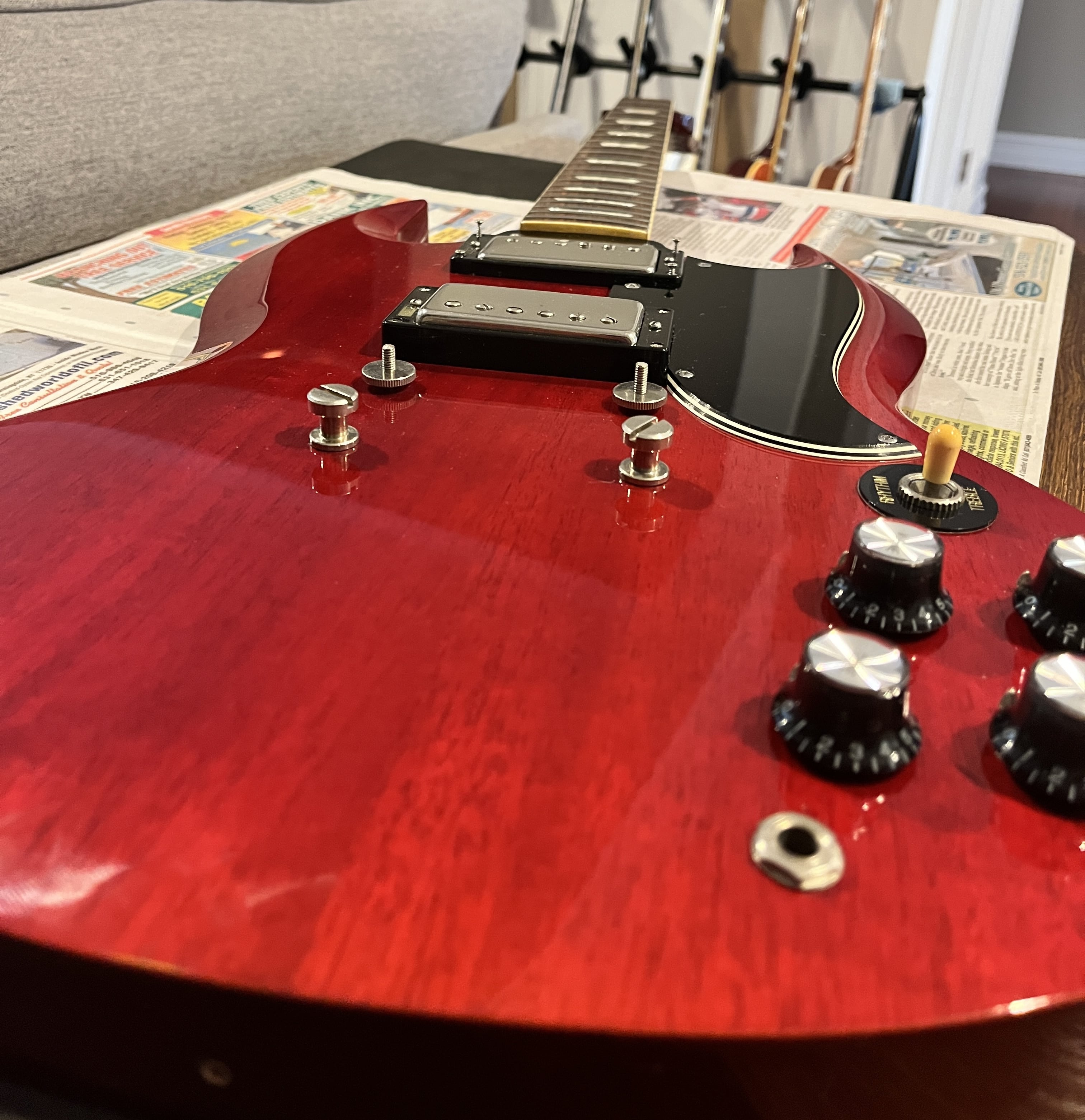 Straight from Japan2nd gen VH-1 pickupsFull size potsAdding shieldingThree coatsConnecting cavities with wireSanded the rough poly bumps outShielding paintMore shielding and connected the control cavity to the pickup routesControl Cavity all done.Shielded cavity coverNot mint but much better8.208k on the neck and 8.088k on the bridge (not a typo!)Took the cover off a pickup to see if it had ceramic magnets and found Alnico magnets instead!Removing rust with vinegarPickup screws restoredAll Cleaned upFrets beam leveledStarting to crown fretsFrets crowned and sanded smoothFretboard cleaned and oiledNice rosewood grainSanded smooth with 1500,2500 and then polishing the topangle shotBuffed up pickguardStarting to come togetherKnobs are too bright, I’m going to swap them out for more vintage reflectors.Sanded headstock and some touchupAll polished upCA glue added to fix loose tuner screwholesStarting to fit a new nut.Scribing board radiusNew nut complete