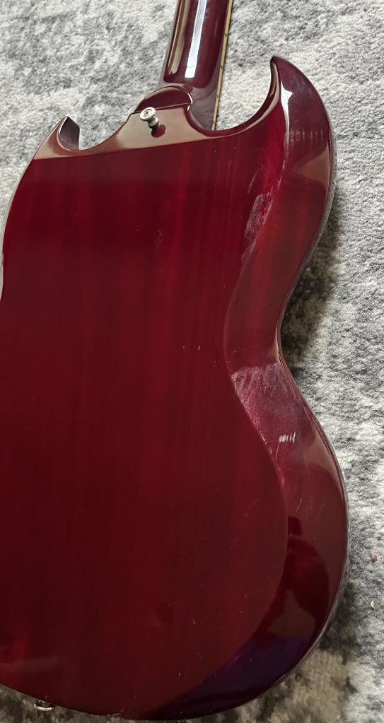 2013 Edwards E-SG-90LT2/P (SOLD) Very nice Edwards Sg with CTS pots, Lacquer over poly finish and Seymour Duncan P90’s Neck Pickup: 7.82k, 5.58H / Bridge Pickup: 9.04k, 8.75H Nut Width: 1.705″ / Thickness @ 1st fret: .790 / Thickness @12th fret: .826
